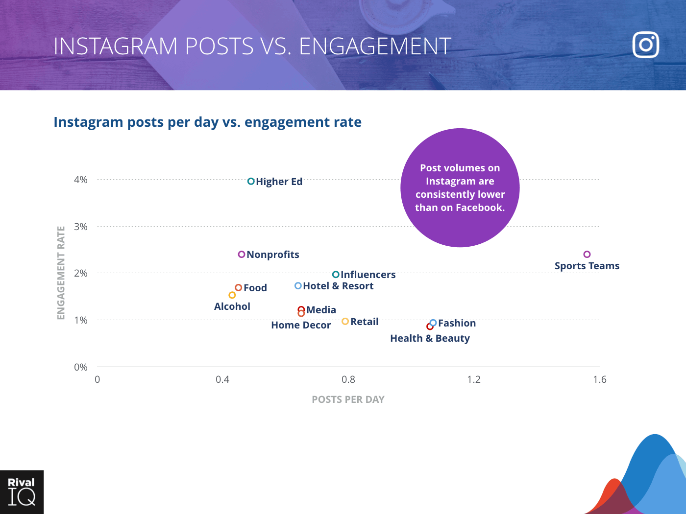 As might be expected, the Fashion sector has some of the highest engagement rates and post frequency.